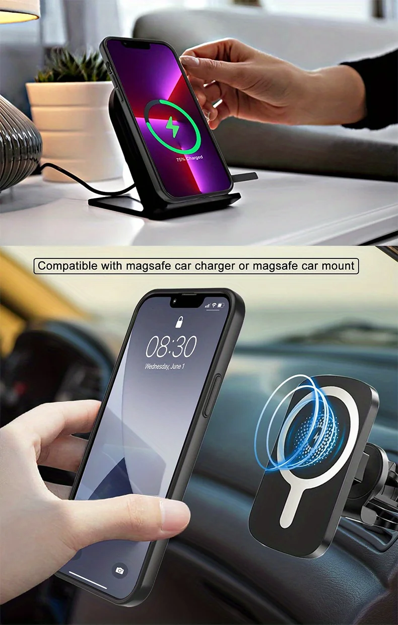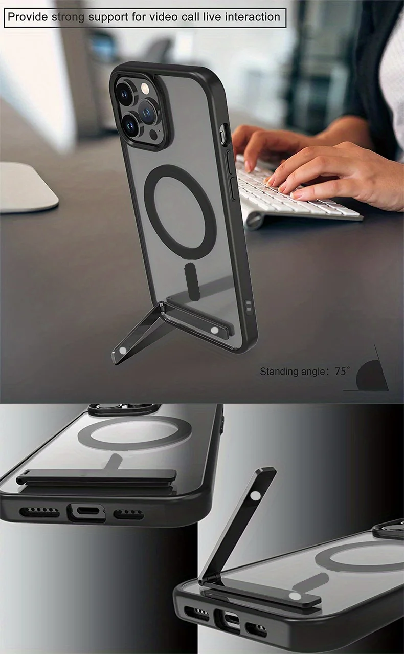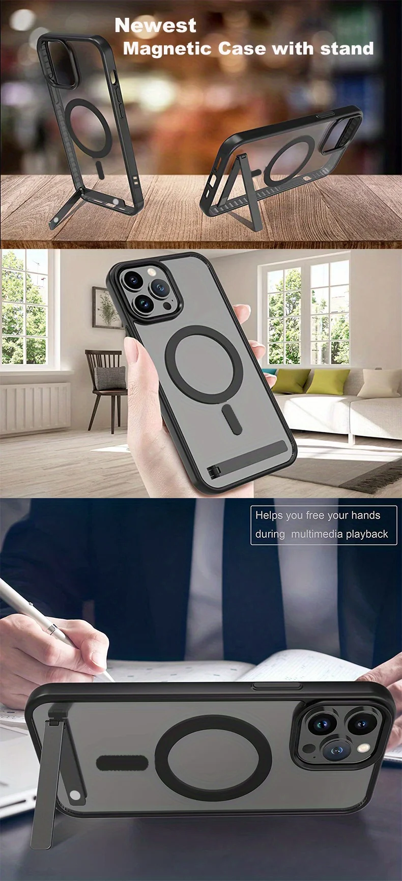 2 In 1 Magnetic Phone Case with Metal Kickstand for iPhone 15 Pro Max 14 Plus 13 11 12 Mini Slim Mobile Stand Cases Back Cover